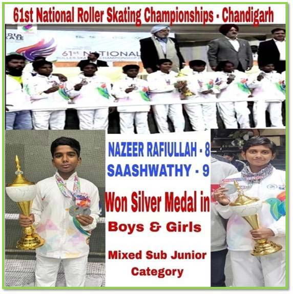 Nazeer Rafiullah (VIII) and Saashwathy (IX) won Silver Medals at the National Roller Skating Championship.
