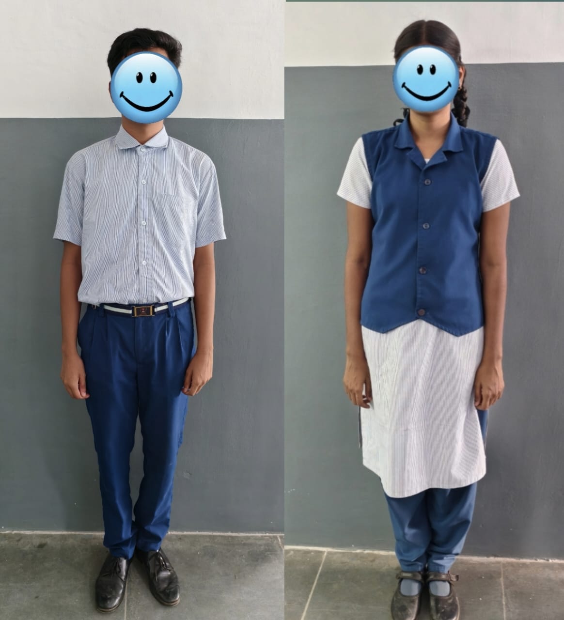 | VII to X | Checked blue half-sleeves shirt | Peacock blue full pant | Grey socks | Black shoes with lace | |